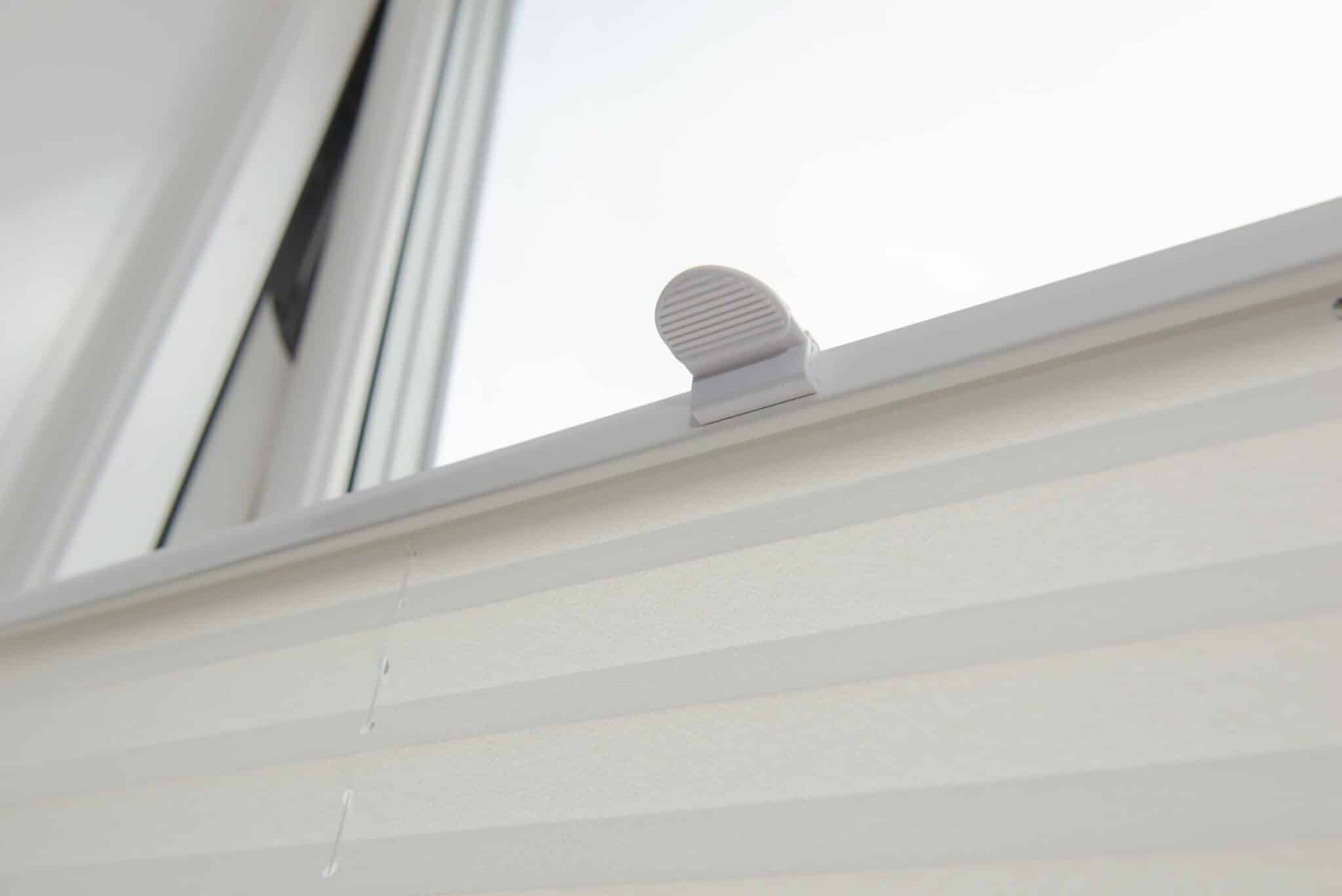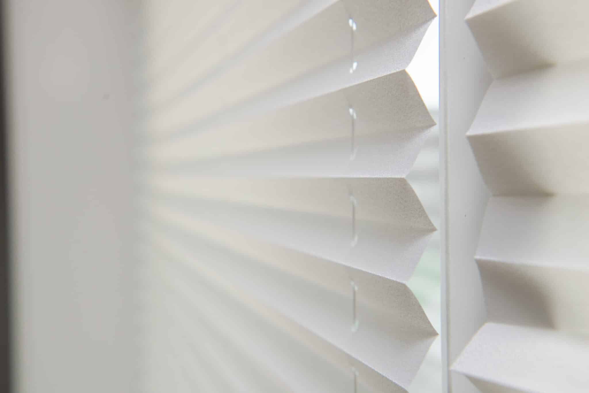 1 x plisségardin med grebsbetjening og 1 x plisségardin med snorbetjening på begge sider – dækker op til 3,7 meter.
