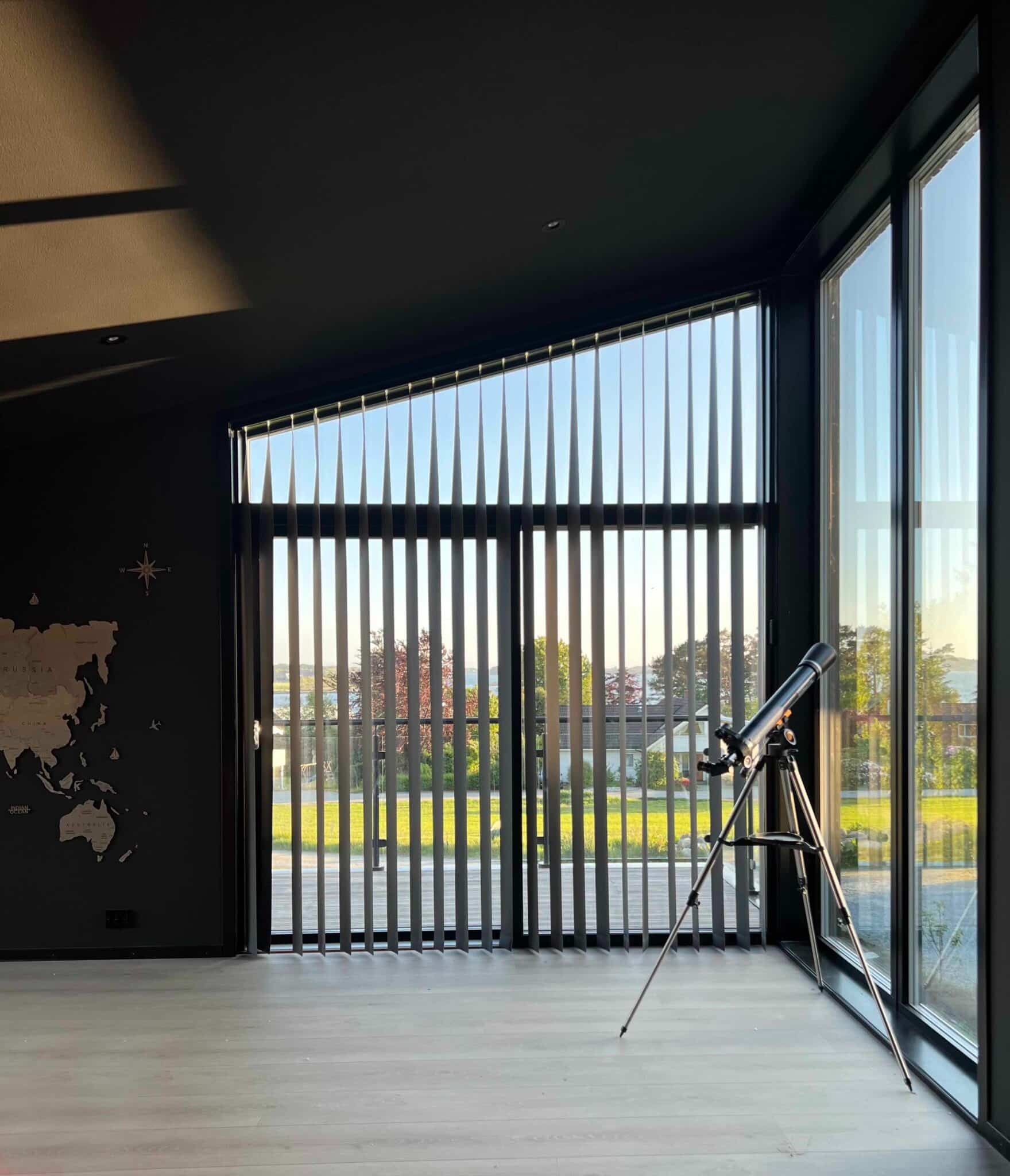 Lamelgardiner til skråvindue: – Passer perfekt til vores hjemmebiograf