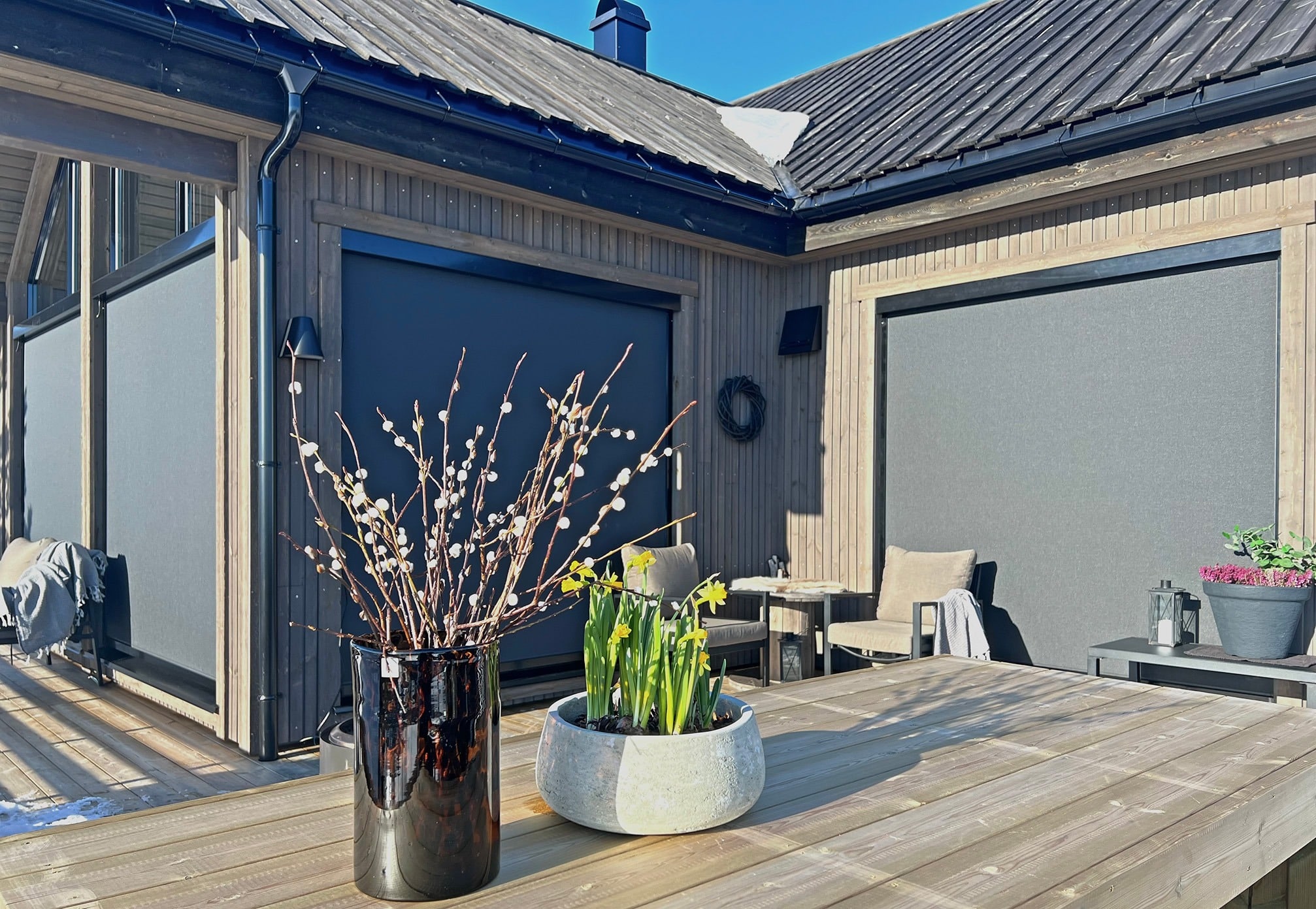 Zipscreen er perfekt til hytten for at bevare den smukke udsigt, afskærme for indsyn og skabe en behagelig indendørstemperatur.