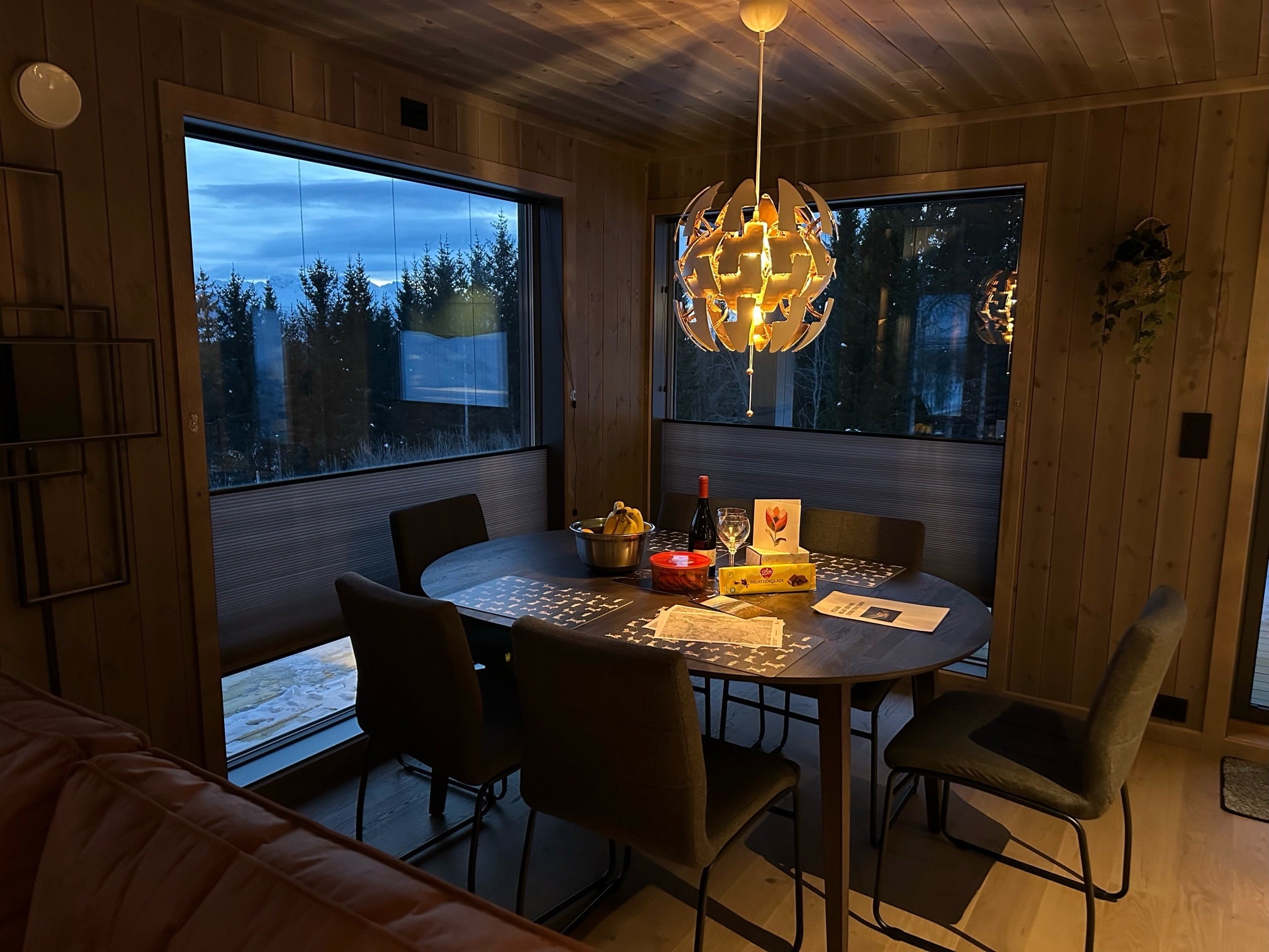 Vi monterede to plisségardiner i spisestuen på et sommerhus. Med sort profil og gråt tekstil passer plisségardinet perfekt ind i spisestuen som en naturlig del af indretningen. Det giver et varmt udtryk og dæmper det skarpe sollys.